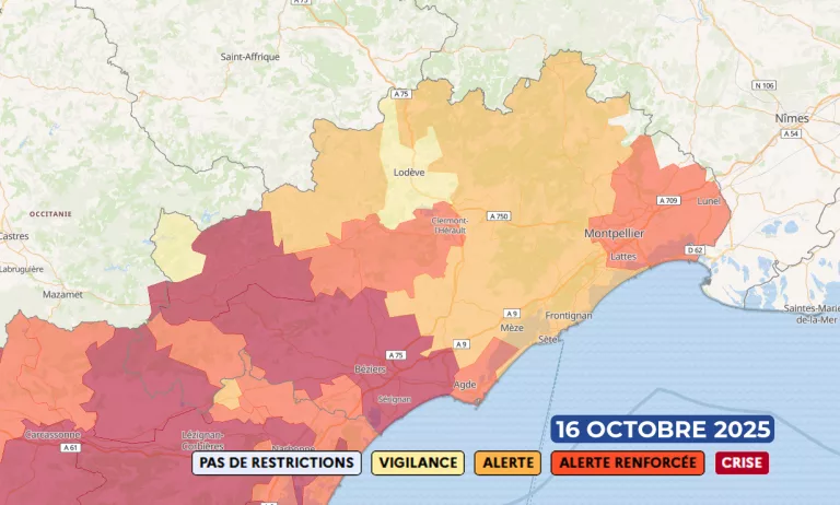 sécheresse Article du 16/10/2025 à 13h00Sécheresse dans l'Hérault : Le point sur les restrictions d'eau au 16 octobre 2025 Aujourd'hui, ...
